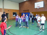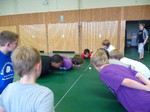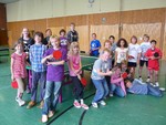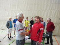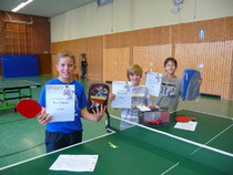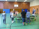 So musste z.B. der Ball zielgenau in ein Tor geschlagen werden oder er musste beim rückwärtsgehen fehlerfrei auf dem Schläger getippt werden. Außerdem wurden zahlreiche Staffel- und Gruppenspiele mit und ohne Schläger durchgeführt, bei denen sich die jedes Mal neu ausgewählten Spieler der jeweiligen Partei leidenschaftlich anfeuerten. Als letztes Spiel wurde der bei Schülern sehr beliebte Plattenrundlauf durchgeführt, bei dem die versierteren Spieler ihr Können zeigen konnten. Zwischendurch gab es zur Erholung und Stärkung eine kleine Erfrischung sowie Süßigkeiten. Zum Schluss wurden die jeweils erzielten Punkte zusammen gerechnet und die Sieger ermittelt. Den ersten Platz erzielte Luca Schimmel. Zweiter und dritter wurden Nico Ebmeierund David Pott. Alle drei durften sich neben den Hauptpreisen noch über eine schöne Siegerurkunde freuen. Für die restlichen Kinder gab es kleine Trostpreise und für alle die Einladung zu einem kostenlosen Probetraining der Tischtennisabteilung.