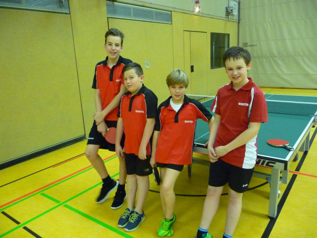 Die neu formierte 1. B-Schülermannschaft des BTW mit Kevin Erdelt, Anton Schäffler, Max Hüttemann und Simon Schnittger wurde unangefochten mit 14:0 Punkten Herbstmeister der TT-Kreisliga Schüler B.