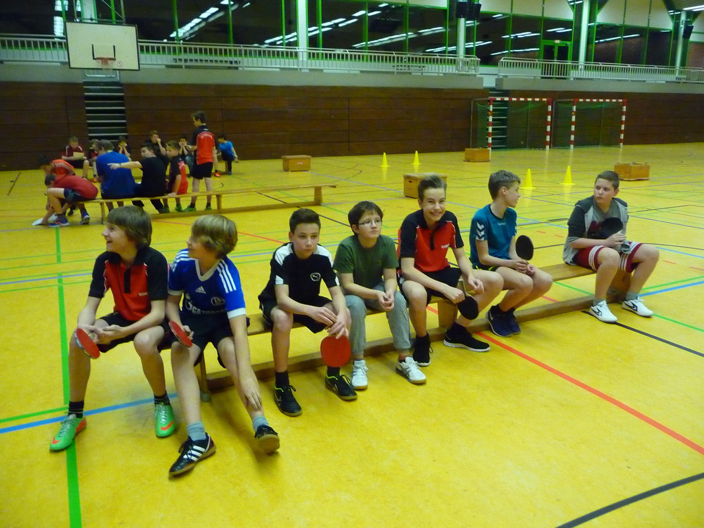 Fast 80 hochmotivierte Wettkämpfer der Jahrgangsstufen 5 bis 6 nahmen in 18 Teams am Vorrundenturnier der Realschule Bünde-Mitte teil. Die Tischtennisplatten waren von