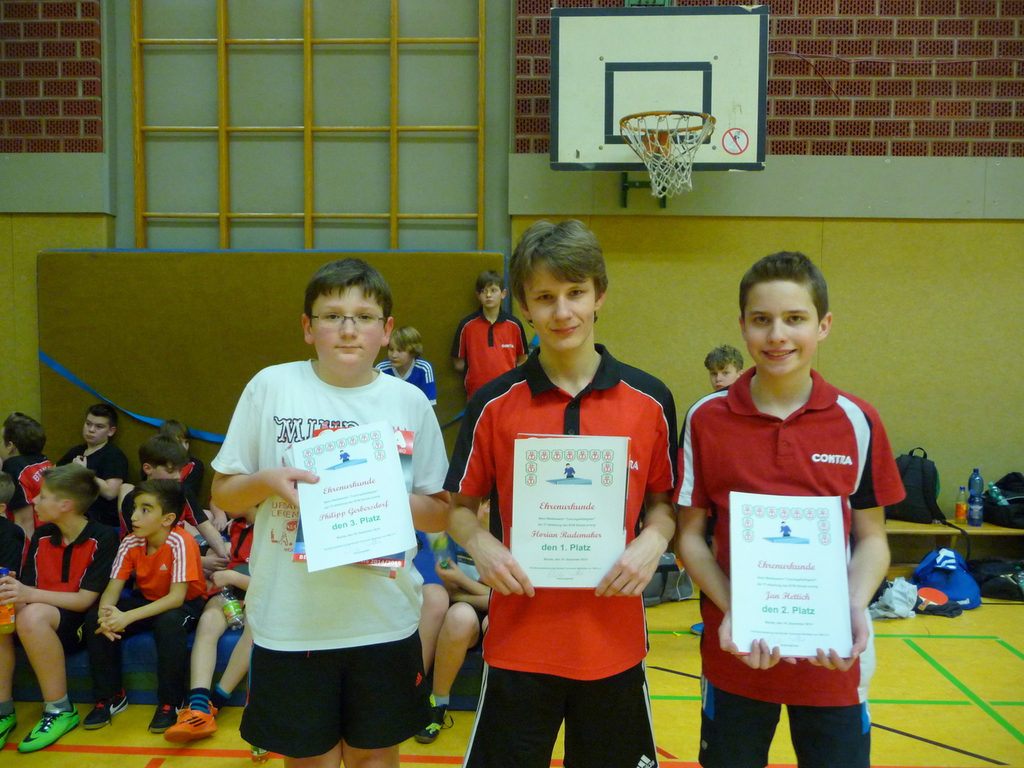 Bei den Jungen wurde wie im Vorjahr aufgrund der wenigen Teilnehmer nur in einer Gruppe gespielt. Da Vorjahressieger Thomas Gibert in den Erwachsenenspielbetrieb gewechselt war, setzte sich hier der talentierte Nachwuchsspieler Julian Gaab durch, allerdings nur aufgrund eines besseren Satzverhältnisses gegenüber dem zweiplatzierten Marius Neiwert. Platz 3 belegten Mario Hüsing und Florian Rademaker. In der Doppelkonkurrenz musste sich Julian Gaab mit seinem Doppelpartner Florian Rademaker dann allerdings der an diesem Tag deutlich stärkeren Doppelpaarung Mario Hüsing und Marius Neiwert geschlagen geben.