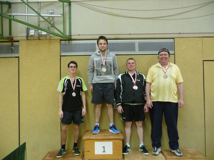 Schon bald herrschte ein reges Treiben an den Platten und trotz Punktevorgaben qualifizierten sich die Favoriten Sven Sommer und Marko Langenitz für das erste Halbfinale der Herren. Im zweiten Halbfinale traf dann Alexander Stefanik auf Christian List. Im Finale standen sich dann Langenitz und List gegenüber. Gegen 21.00 Uhr stand dann nach einem heftig umkämpften Spiel Christian List mit 2:1 Siegen als neuer Vereinsmeister 2014 fest. Den 3. Platz belegten der Vorjahressieger Sven Sommer und Alexander Stefanik. Im Herrendoppel spielten Viktor Görlitz und Jörg Knauf das Finale gegen Frank Grotjahn und Marko Langenitz, wobei die erstgenannten sich relativ sicher mit 2:0 durchsetzten.