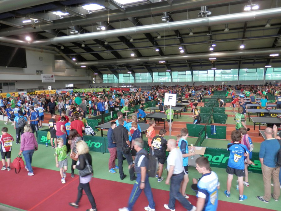 Bereits um sechs Uhr morgens startete er am 22.8.2014 mit Jona Staats, Daniel Schnier, Felix Rademaker, Joscha Cerny , Kevin Erdelt und AntonSchäffler vom Bünder Marktplatz aus mit einem Bulli nach Düsseldorf, um rechtzeitig zum Turnierbeginn dort einzutreffen. In der riesigen Leichtathletikhalle angekommen wurde zuerst ein fester Treffpunkt für alle Spieler vereinbart. Danach wurde es zu einem großen Unterfangen, eine Platte zum Einspielen zu ergattern und zusammen mit über tausend anderen Spielern an der Informationswand die Namen und Zeiten der ausgehängten Spielpaarungen zu ermitteln. Nicht minder schwierig war es, zu den festgeschriebenen Startzeiten sich mit einem teilweise fremden Spielpartner am richtigen Ort einzufinden.