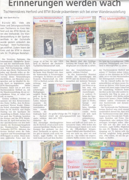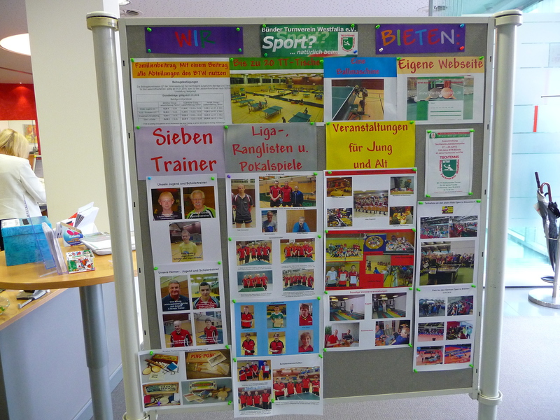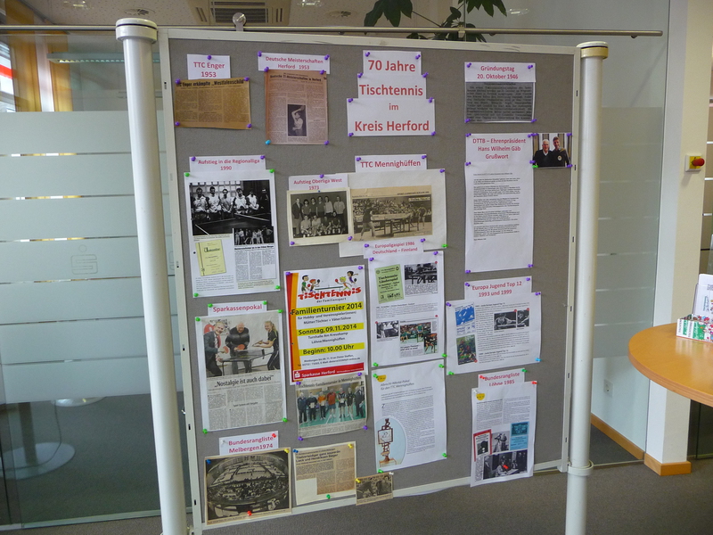 Ausstellung des TT-Kreises Herford und der Tischtennisabteilung in der Sparkasse Herford, Bünde, Eschstr. 37 |