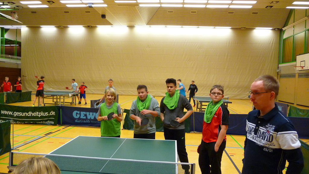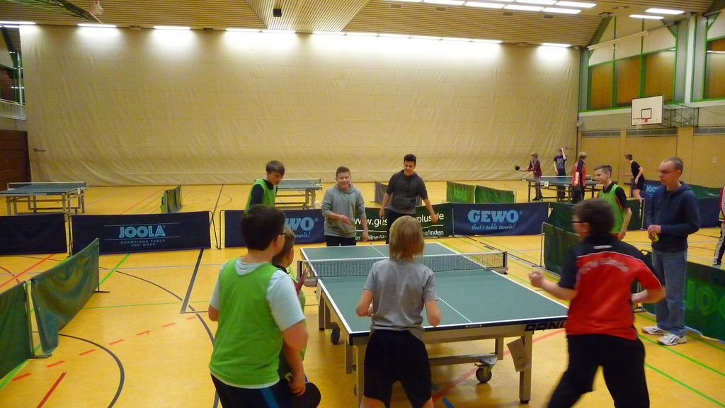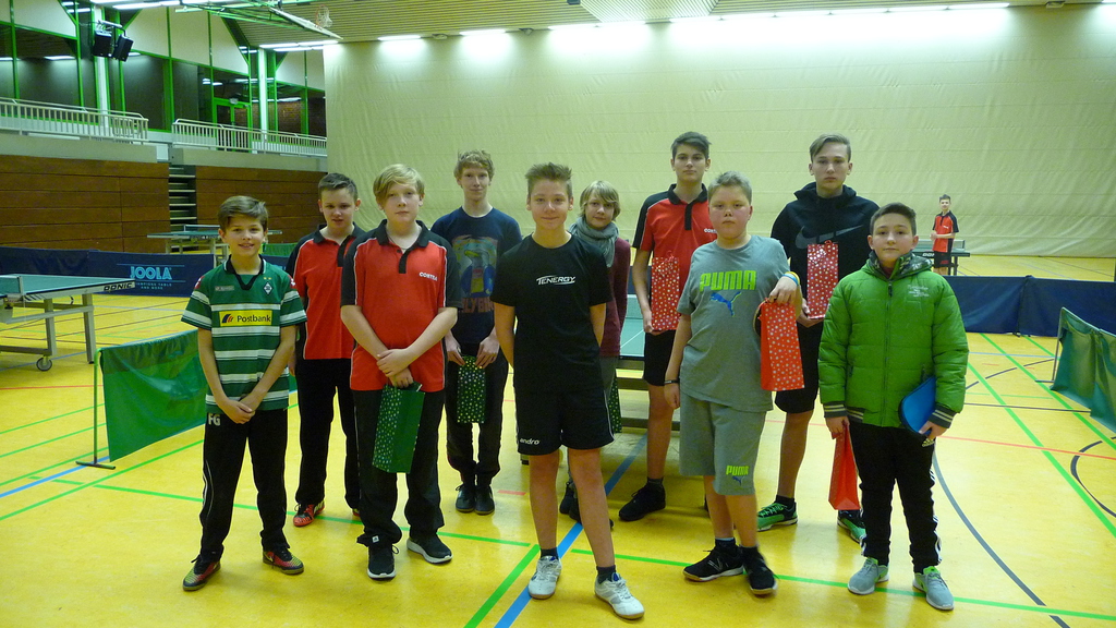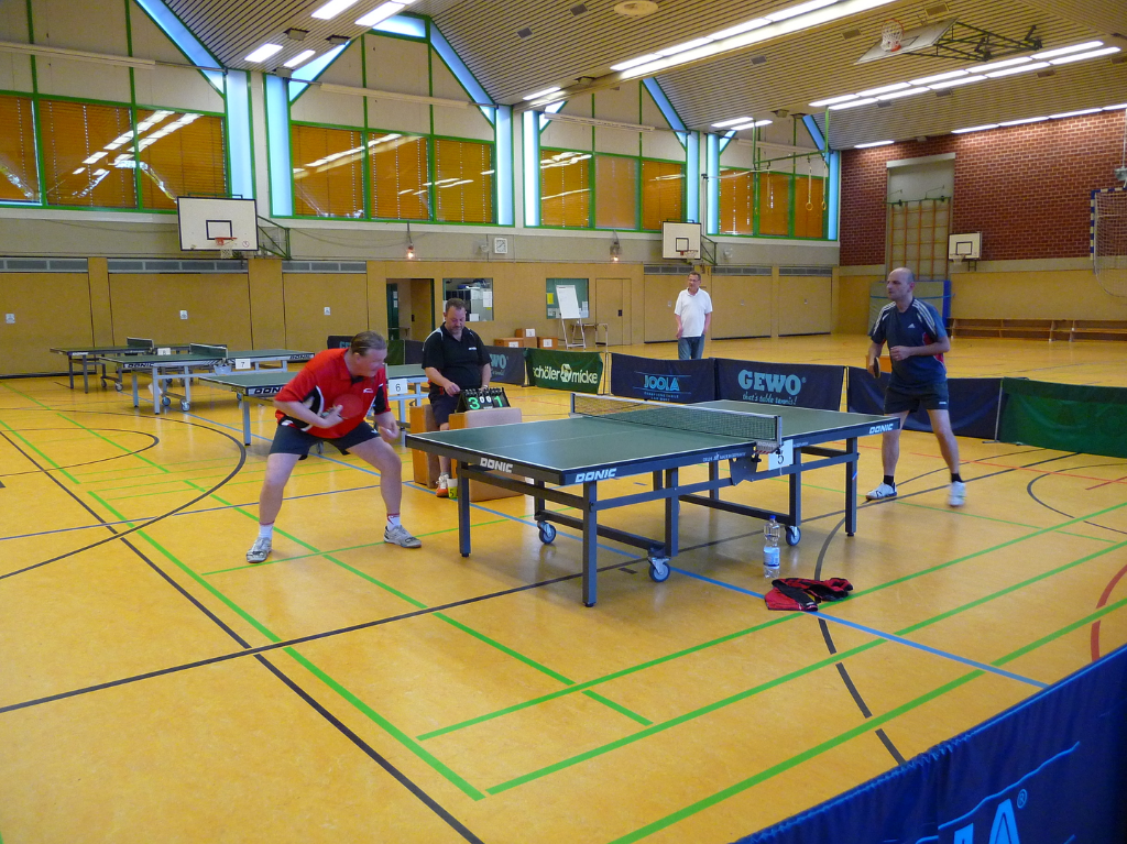 Gleich von Beginn an waren alle Spieler eifrig bei der Sache und kämpften eifrig um jeden Ball. Aus den Gruppenspielen gingen in Gruppe A das Team Ballmaschine als Sieger und das Team Schmetterball als Zweitplatzierter hervor. Bei der Gruppe B waren dies Topspin und Netzball und der Gruppe C Gewinner und Playboys. Diese Teams nahmen auch an den Viertelfinalspielen teil, wobei Ballmaschine und Topspin Glück hatten und Freilos zogen. Im Halbfinale setzte sich Ballmaschine mit Leßmann, Löwen, Jack und Jorde gegen Playboys mit Schnittger, Möller, Preger und Leon Müller und Schmetterball mit Staats, Jan Fischer, Kaliqani und Bulthaup gegen Topspin mit Erdelt, Kollmeier, Pinneker und Gleba durch. Im Finale besiegte das Team Schmetterball das Team Ballmaschine klar mit 3:0. Im Spiel um den 3. Platz unterlag dann das Team Playboys dem Team Topspin ganz knapp mit 3:2. Damit die übrigen Teams bis zur Abwicklung der Finalspiele keine Langeweile schieben musste, wurde für diese eine Trostrunde durchgeführt. Platz 5 belegte Team Netzball, Platz 6 Team Gewinner, Platz 7 Team Kämpfer, Platz 8 Team Schläger und Platz 9 Team Pingpong.