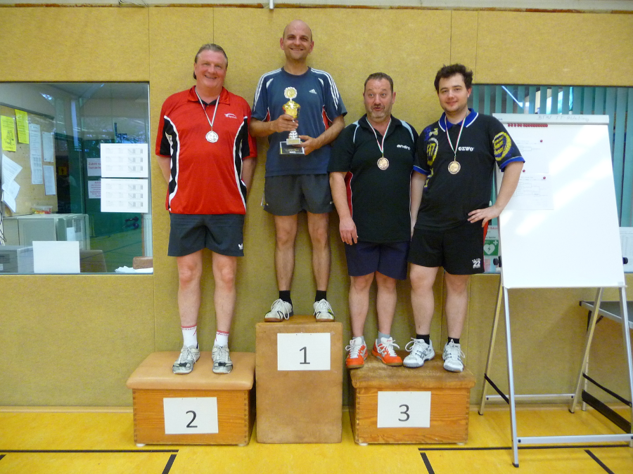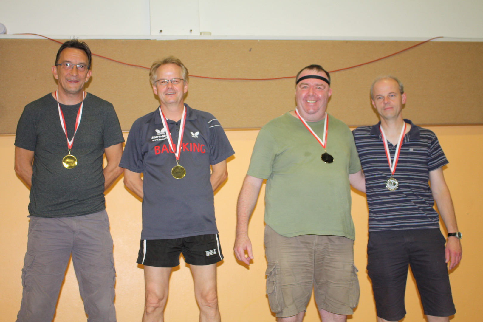 Nach kurzer Begrüßung und Erläuterung der Spielregularien durch den Abteilungs- und Turnierleiter Dieter Früchtel erfolgte bei den Herren die Auslosung der Spieler in 6 Gruppen zu jeweils 4 Spielern. In den Gruppen spielte Jeder gegen Jeden. Die ersten Beiden einer jeden Gruppe erreichten das Achtelfinale. Nach Abschluss des Viertelfinales qualifizierten sich trotz teilweise hoher Punktevorgaben die Favoriten Carsten Hachmeister und Uwe Körnig zusammen mit Marko Langenitz und Paul Hoffmann für das Halbfinale. Auch hier setzten sich die beiden Favoriten nach teilweise hochklassigen Spielen durch. Im Finale gewann dann Uwe Körnig bei keinerlei Punktevorgaben den ersten Satz knapp mit 21:19 und es sah schon nach einer Wiederholung seines Erfolges vom letzten Jahr aus. Carsten Hachmeister steckte jedoch nicht auf, gewann in einem spannenden Match den zweiten Satz ebenfalls mit 21:19 und holte sich im dritten Satz dann deutlich mit 21:13 die Vereinsmeisterschaft der Herren. Im Doppel war Carsten Hachmeister zusammen mit Bernd Rühle gegen Markus Radmann und Andreas Schmidt ebenfalls erfolgreich. Abteilungsleiter Früchtel freute sich über die Erfolge von Hachmeister sehr, da dieser aus Niedersachsen vom MTV Rumbeck als Bezirksklassespieler nach Bünde gewechselt ist und in der kommenden Saison die 1. Mannschaft in der Kreisliga verstärken wird.