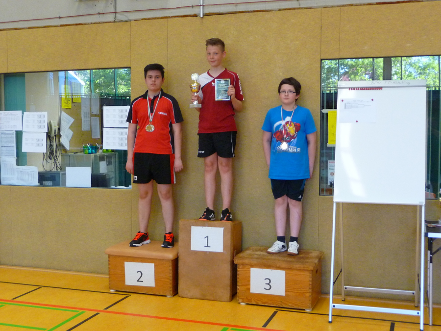 In der Schülerklasse trafen sowohl A als B Schüler aufeinander. Wie im Vorjahr qualifizierten sich Batuhan Dalli und Tim Leßmann für das Finale und auch diesmal dominierte Tim Leßmann seinen Gegner trotz hoher Vorgabe von sieben Punkten klar und gewann das Spiel in zwei Sätzen mit 21:10 und 21:15. Den dritten Platz erreichten Kevin Erdelt und Wilhelm Gaab. Im Doppel setzen sich Simon Schnittger und Okan Cakir ebenfalls deutlich in zwei Sätzen gegen Batuhan Dalli und Cedric Bulthaup durch.