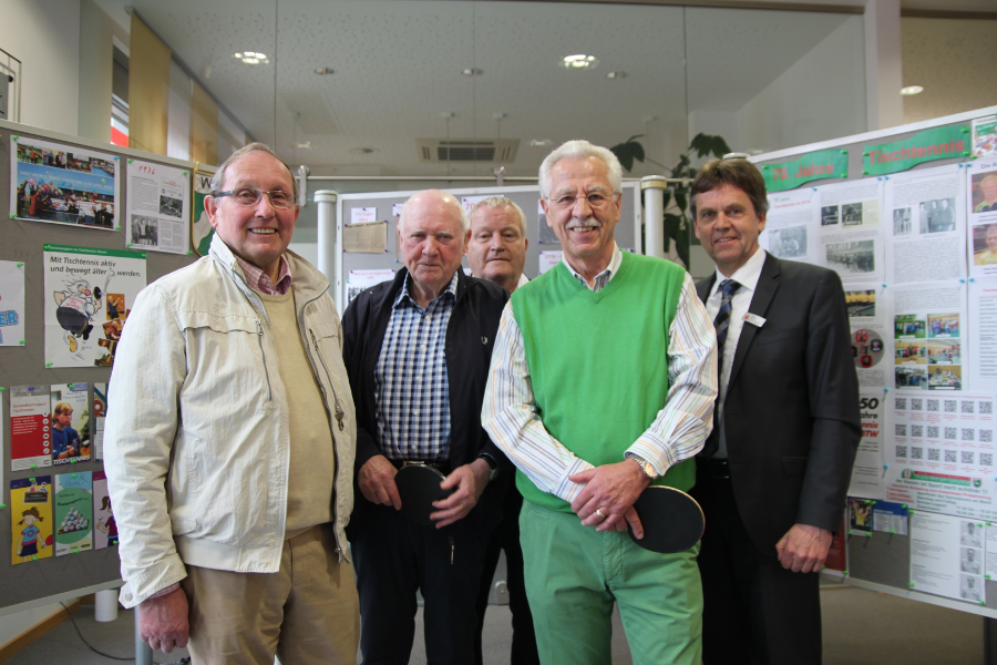 Pünktlich zum Welt-TT-Tag am 06.04.16 ist in der Filiale der Sparkasse Herford, Eschstraße 37, die Ausstellung zu 70 Jahren Tischtennis im Kreis Herford und beim BTW Bünde eröffnet worden. Bis zum 30.4.2016 sind auf den Vorder- und Rückseiten von drei Stellwänden die Breitensportangebote des WTTV, Veranstaltungen des Kreises Herford und der TT-Abteilung des BTW in den letzten 70 Jahren zu sehen.