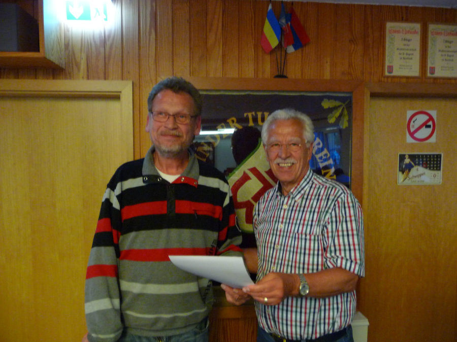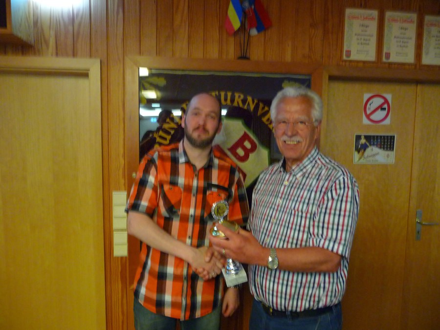 Markus Radmann wurde als Spieler der Saison mit einer Urkunde und einem Pokal ausgezeichnet, da er in sportlicher Hinsicht eine herausragende Spielerbilanz zu verzeichnen und sich selbstlos in zahlreichen Spielen als Ersatzmann für die 1. Mannschaft. zur Verfügung gestellt hatte. Kassenwart Hans-Hermann Schürmeier wurde für über 50järhige Mitgliedschaft in der TT-Abteilung mit einer Ehrenurkunde und einem kleinen Präsent geehrt.