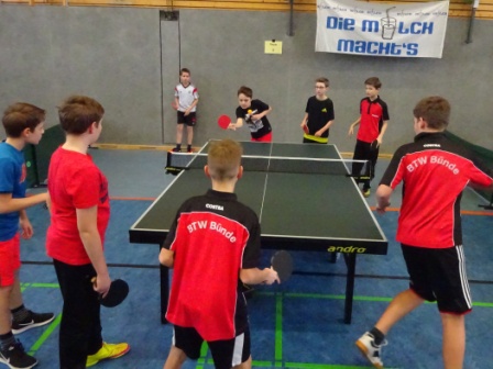 Bereits zum 4. Mal richtete die Realschule Bünde-Mitte im Januar dieses Jahres mit Unterstützung der Tischtennisabteilung des BTW Bünde den Milchcup aus. Bei diesem schulinternen Tischtennis-Rundlauf-Turnier hatten sich vier Mannschaften des Jahrgangs 5 und 6 als Beste durchgesetzt und für den Bezirksentscheid der Schulen in Minden qualifiziert.