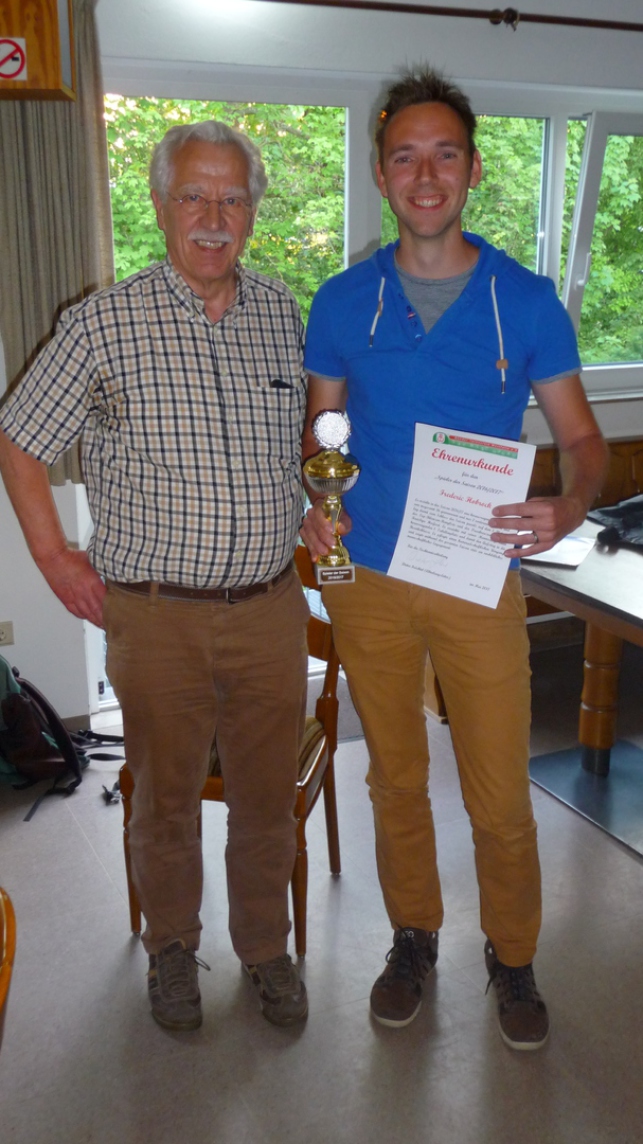 Frederic Hobrock wurde als Spieler der Saison mit einer Urkunde und einem Pokal ausgezeichnet, da er in der vergangenen Saison mit nur zwei Niederlagen eine herausragende Spielerbilanz zu verzeichnen hatte und damit in der Top-Bilanzen-Rangliste und der Paarkreuzrangliste des Kreises Herford jeweils den 1. Platz erzielte.