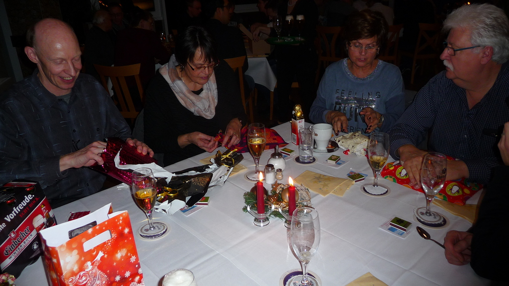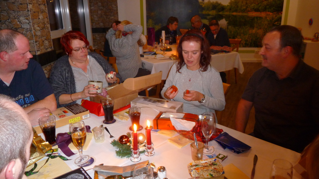 Bei den Erwachsenen fand die Feier nunmehr bereits zum sechsten Mal im Cafe Panoramablick im Bünder Kaufhaus statt. Mit 46 Spielern und Angehörigen war die Beteiligung wieder ausgesprochen gut. Nach einem leckeren Buffet wurde anschließend gewichtelt. Alle Beteiligten verbrachten einen schönen Abend, der für viele erst weit nach Mitternacht endete.
