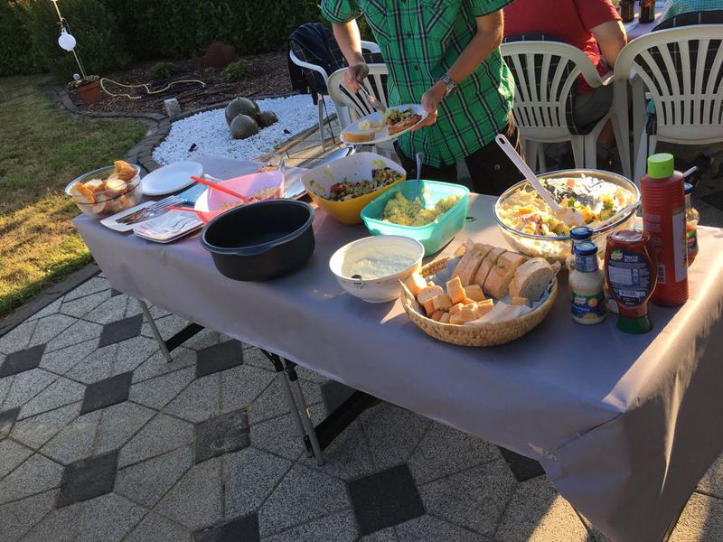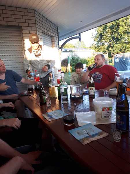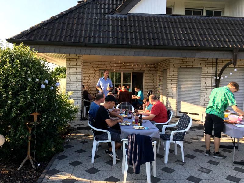 Das Wetter spielte mit, so dass man es sich auf Terrasse bei reichlicher Flüssigkeitszufuhr und gut gegrillten Würstchen und Fleisch bis spät in den Abend hinein gut gehen lassen konnte.
