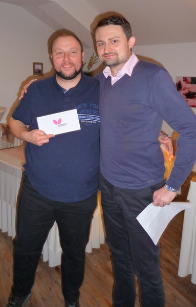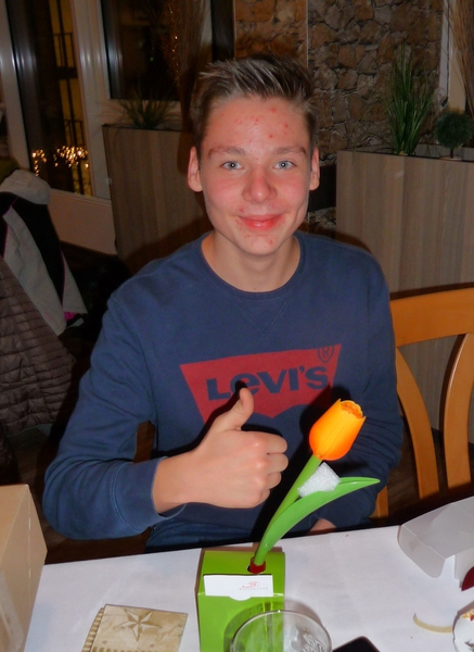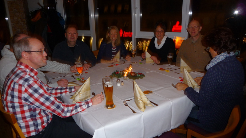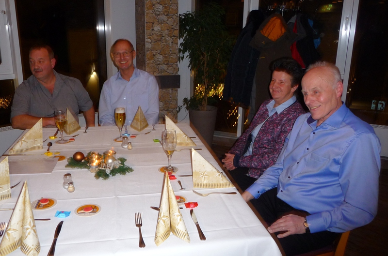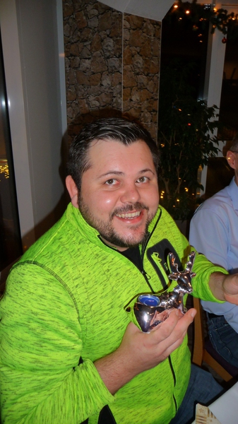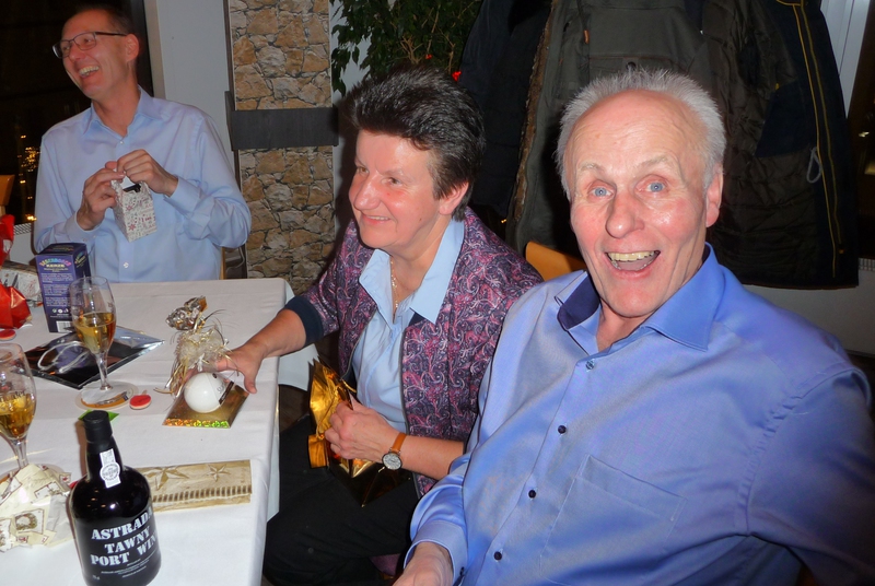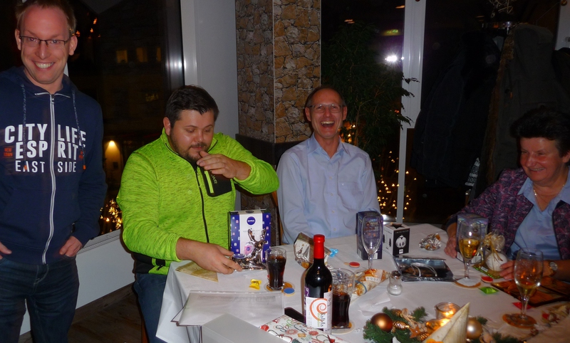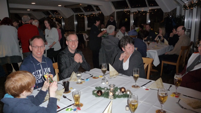 Sein Stellvertreter, Florian Rademaker, hatte sich als besondere Überraschung einen kleinen Tischtennisschläger als Platzkarte ausgedacht. Und wie immer hatte der Gastronom Finkemeyer die Speisen toll arrangiert und schmackhaft zubereitet. Nach dem Essen fand wieder ein Geschenkewichteln statt, welches allen Beteiligten aufgrund der teilweise sehr witzigen Geschenke viel Spaß bereitete. Den Hauptpreis des Abends gewann beim Würfeln wie im Vorjahr Stefan Mischke. Wie immer ging der feuchtfröhliche Abend erst spät nach Mitternacht zu Ende.