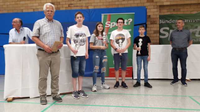 Nur die Mannschaften vom TTC Enger und dem TTC Mennighüffen II waren erfolgreicher. Für die gute Platzierung überreichte Abteilungsleiter Damian Schwarz der 1. Schüler die Bronzemedaille. In der Mannschaft spielten Wilhelm Gaab (Bilanz: 31:7), Leon Müller (30:12), Noél Rühle (15:15), Joalin Wendelberger (12:16) und Robin Wippermann (1:7). Wilhelm Gaab erzielte mit seiner Einzelbilanz ebenfalls einen sehr guten 3. Platz unter allen Kreisligaspielern.