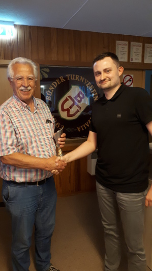 Dieter Früchtel wurde als Spieler der Saison mit einer Urkunde und einem Pokal ausgezeichnet. Damian Schwarz würdigte damit die Verdienste von Dieter Früchtel für die Leitung der Tischtennisabteilung in den vergangenen 9 Jahren.