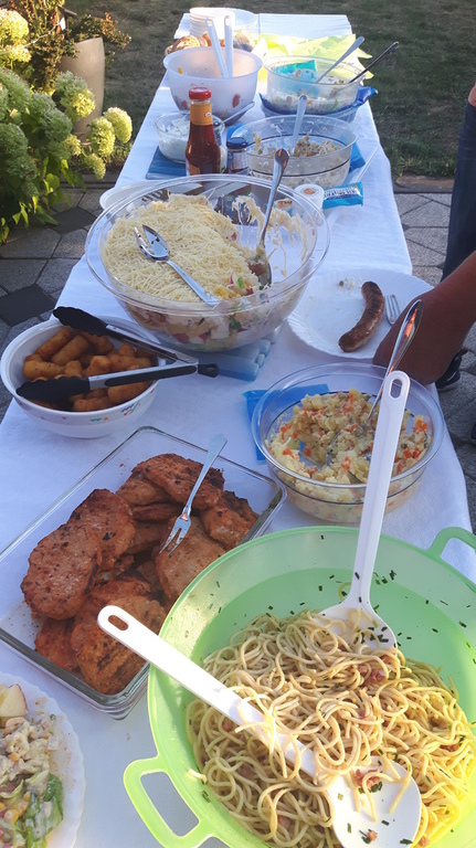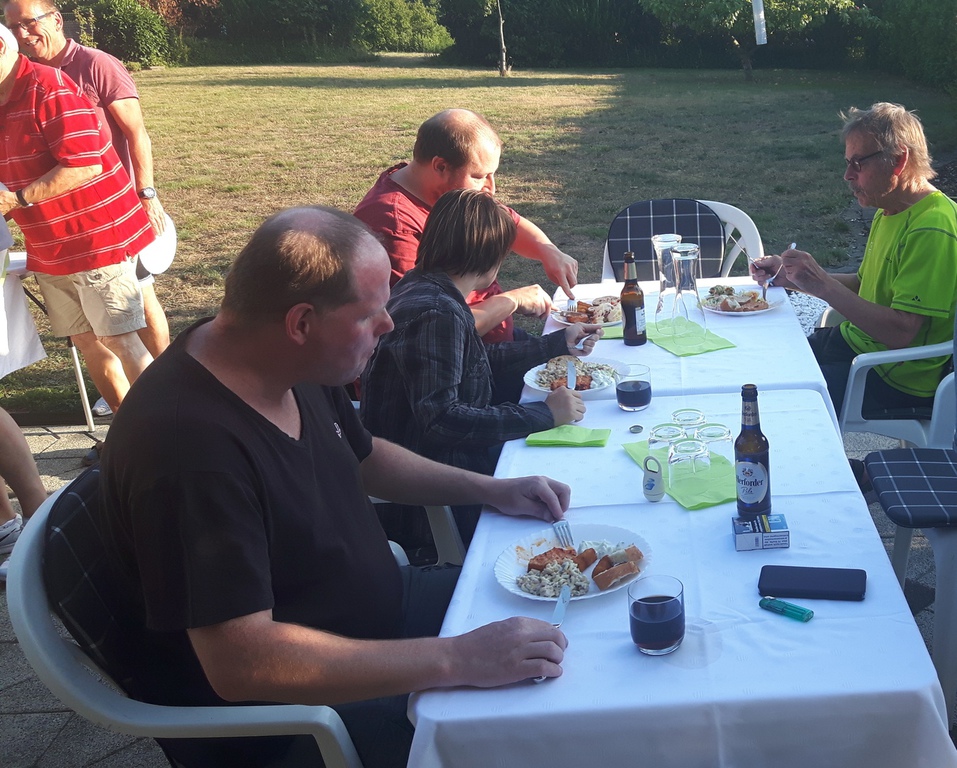 Das Sommerfest der TT-Abteilung fand wie in jedem Jahr auf der Terrasse von Uwe Burkheiser statt. Der Wettergott meinte es wieder einmal gut mit den Spielern, so dass man sich bis spät in den Abend an Bier, Würstchen, Fleisch und den mitgebrachten Salaten erfreuen konnte.