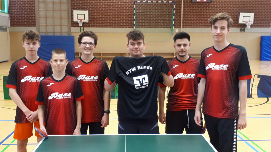 Auch Mitglieder der Tischtennisabteilung des BTW Bünde nahmen in diesem Jahr wieder einmal an der Ehrung teil. So wurde die A Schülermannschaft des BTW mit den Spielern Wilhelm Gaab, Leon Müller, Noél Rühle, Joalin Wendelberger und Robin Wippermann für ihren 3. Tabellenplatz in der Kreisliga der Saison 2018/2019 mit Siegerpokalen geehrt. Der ehemalige Abteilungsleiter Dieter Früchtel erhielt für seine neunjährige Tätigkeit einen Bildband von Bünde überreicht.