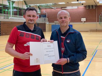 Der in der 1. Mannschaft der TT-Abteilung spielende Peter Omenzetter wurde für seine langjährige Spielerkarriere von Abteilungsleiter Damian Schwarz besonders geehrt. Er erhielt die Silberne Spielernadel für 40 Jahre aktive Teilnahme am TT-Spielbetrieb. Es gratulieren alle Spielerinnen und Spieter der TT-Abteilung herzlich.