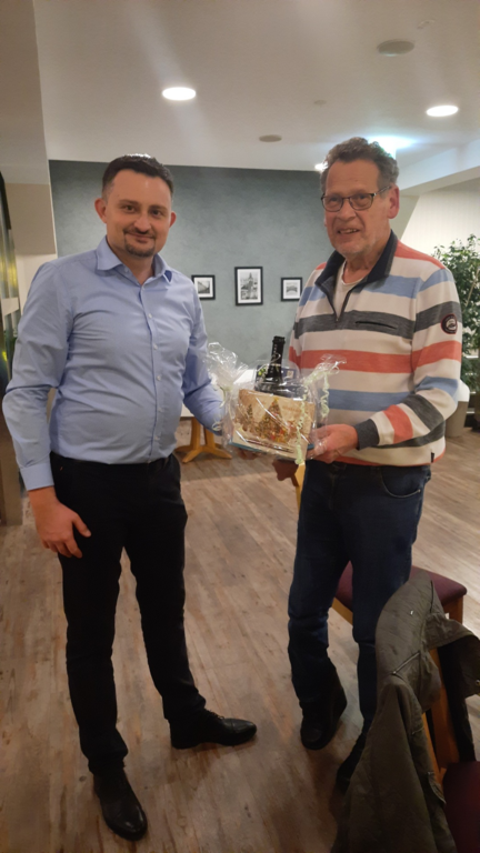 Hernn Areg Hambardzumyan, in Gegenwart von Abteilungsleiter und Nachwuchsbetreuer Damian Schwarz, der bei der Fa. Hettich arbeitet und die Spende aufgrund seines Engagements in der