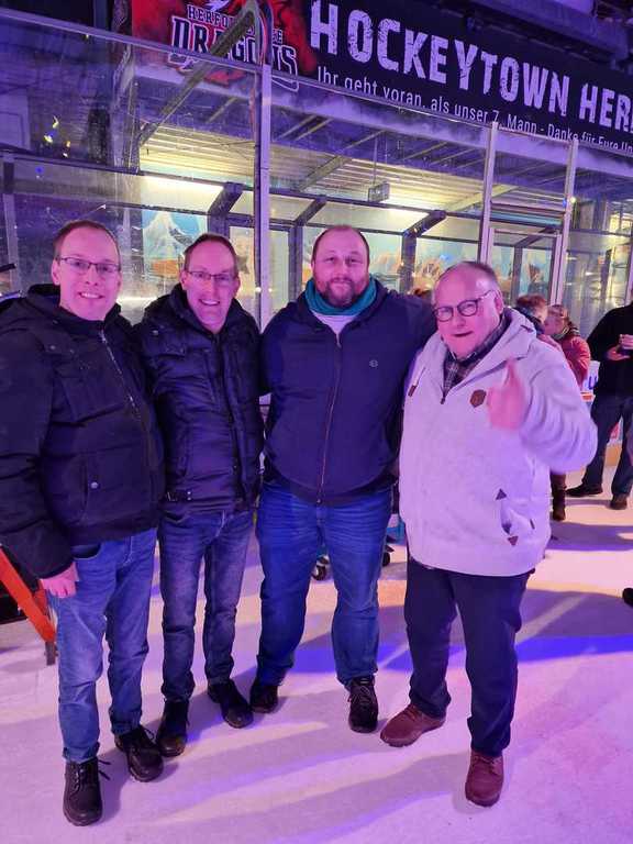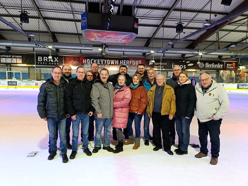 In der Eishalle in Herford hatten sich einige Spieler, wie im vergangenen Jahr auch, zum Eisstockschießen getroffen. Die Spieler haben sich dabei auf zwei Bahnen mit je zwei Teams aufgeteilt und gegeneinander gespielt.