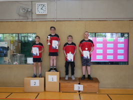 Bei den Mädchen/Jungen 19 wurde aufgrund von nur 7 Teilnehmern Jeder gegen Jeden in einer Gruppe gespielt. Hier zeigte Simon Oberbrehmer eine hervorragende Leistung und wurde in 6 Spielen ungeschlagen und nur einem verlorenen Satz Vereinsmeister. Auf Platz 2 folgte Max Heyer mit 5:1 gewonnenen Spielen. Dritter wurde Lennart Hesse mit 4:2 Siegen.