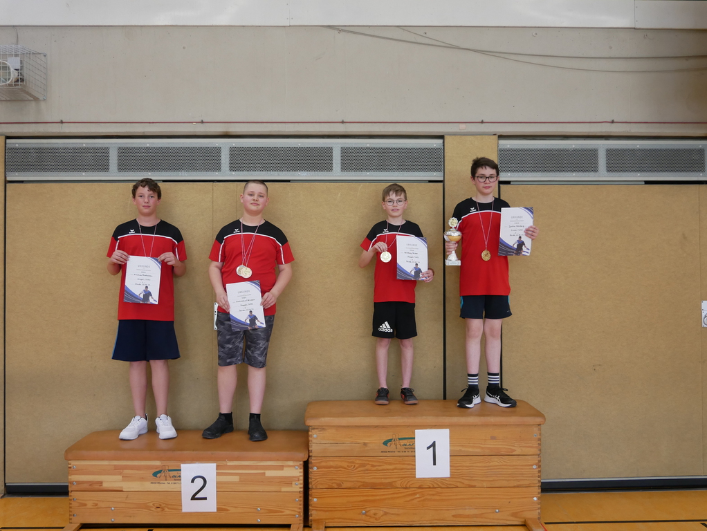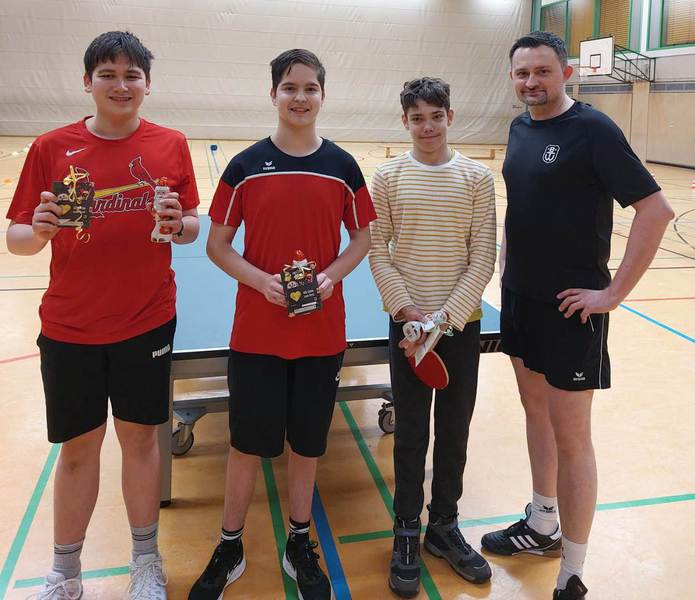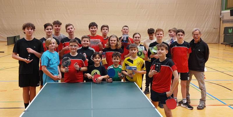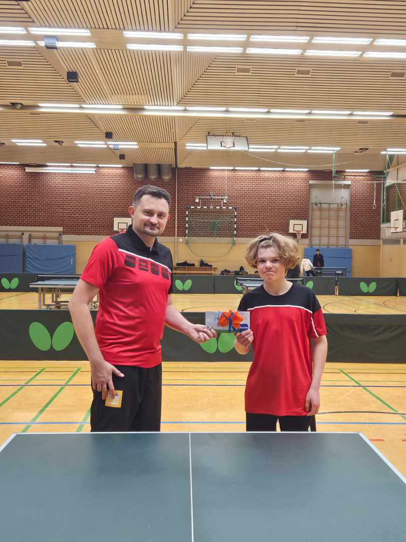 Am Freitag, 15.12.2023, fand in der Sporthalle des Gymnasiums am Markt die diesjährige Weihnachtsfeier der Nachwuchsspieler*innen der TT-Abteilung statt. In diesem Jahr wurde ein Doppelturnier gespielt, bei dem nach jedem Satz die Gegner*innen neu zugelost wurden. Die erzielten Punkte aus jedem Satz wurden am Ende des Turniers addiert. Die drei Erstplatzierten waren Max von Heyer, Basti Grospitz und Max Owetschkin. Im Rahmen der Veranstaltung wurden auch die Trainingsfleißigsten geehrt und der Gewinner des Preises der Schnuppertrainingskarten ausgelost. Trainingsfleißigster war in diesem Jahr Lennart Hasse gefolgt von Kimi Lühr und Simon Oberbremer.Alle drei erhielten tolle Einkaufsgutscheine vom Hornschu in Bünde.