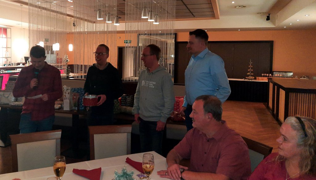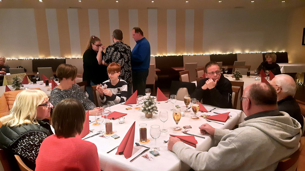 Die Weihnachtsfeier der Tischtennisabteilung des BTW Bünde konnte in diesem Jahr nicht im BüCafe im Bünder Kaufhaus stattfinden, da der Gastronom Finkemeyer aufgrund gesundheitlicher Gründe keine Abendveranstaltungen mehr durchführt. Der Abteilungsvorstand musste sich daher nach einer neuen Lokalität umsehen. Mit dem Restaurant „Zur Klinke“ als Nachfolger hatte man einen guten Griff getan. Das Ambiente war ansprechend und das wie jedes Jahr vom Abteilungsleiter Damian Schwarz bestellte Buffet war hervorragend und ließ keine Wünsche offen.