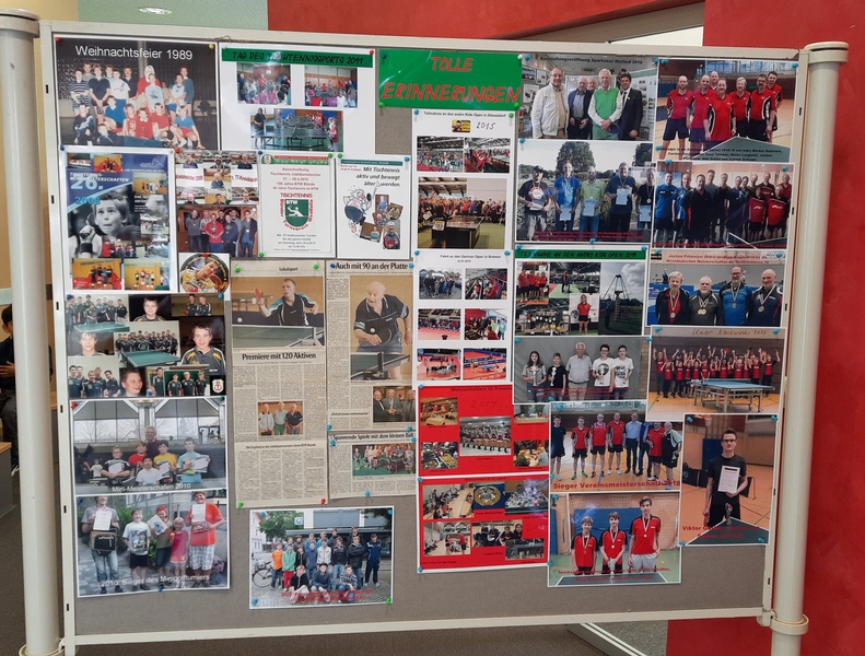 Anlässlich ihres 75. Jubiläums eröffnete die Tischtennisabteilung am 29.4.2022 eine Ausstellung im Foyer der Sparkasse an der Eschstr., die