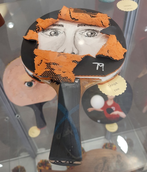 Bünde die Idee, von ihren Schülern Tischtennisschläger zu kleinen Kunstwerken umgestalten zu lassen. Zahlreiche Schläger zeugen von der Kreativität und Inspiration ihrer Schüler und sind in der