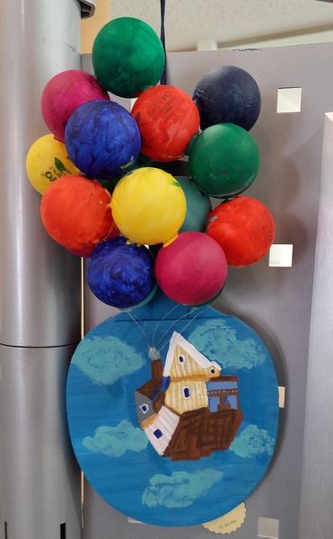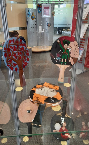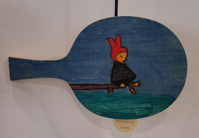 Tischtennisbälle wurden ebenfalls künstlerisch verarbeitet und finden sich in den Bildern vereinzelt als Sonne oder Kaugummiblase wieder. Die rund 45 Schüler*innen, im Alter von 4 bis über 60